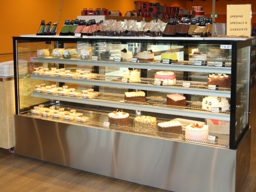 Custom made cake display fridges from a professional shop fitout specialist. Countertop cake display refrigerator, or made to custom size. Glass door, single door, double door cake fridge. As a commercial kitchen designer & manufacturer we will design and build the best custom display fridge for your fitout. Stable temperatures, variable design options, and professional certified refrigeration.
